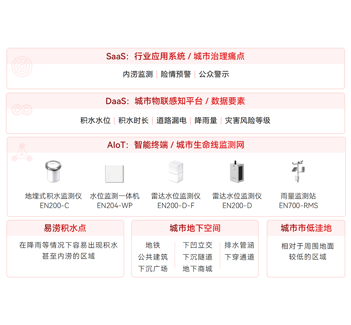 易澇區地面和地下管網布設智能監測儀器,建立覆蓋“源-網-站-廠-河”一體化的排水安全運行監測,滿足日常管理、運行調度、災情預判、預警預報等功能需要,排水防澇能力與建設海綿城市、韌性城市要求匹配,保障城市生命線工程等重要基礎設施安全運行,提升城市排水系統運行效率和防洪排澇治理能力